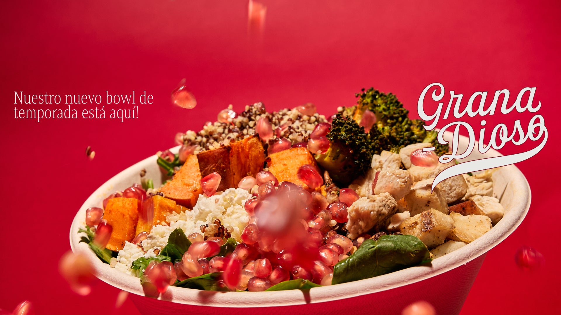 Toppings premiums: Pollo al horno, mix de boniatos, queso de cabra