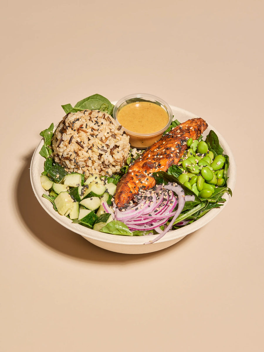 Toppings: Edamame , cebolla morada, pepino, mix de sésamo